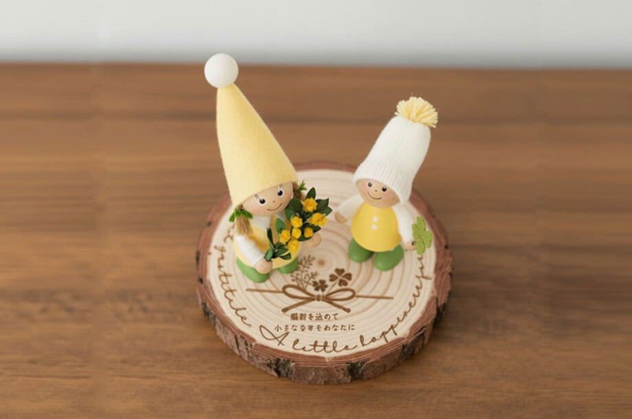 プレートには、春の花をモチーフにした彫刻とお花にちなんだメッセージが刻まれています。ニッセと一緒に飾ることはもちろん、大切な方への贈り物にも添えていただけます。