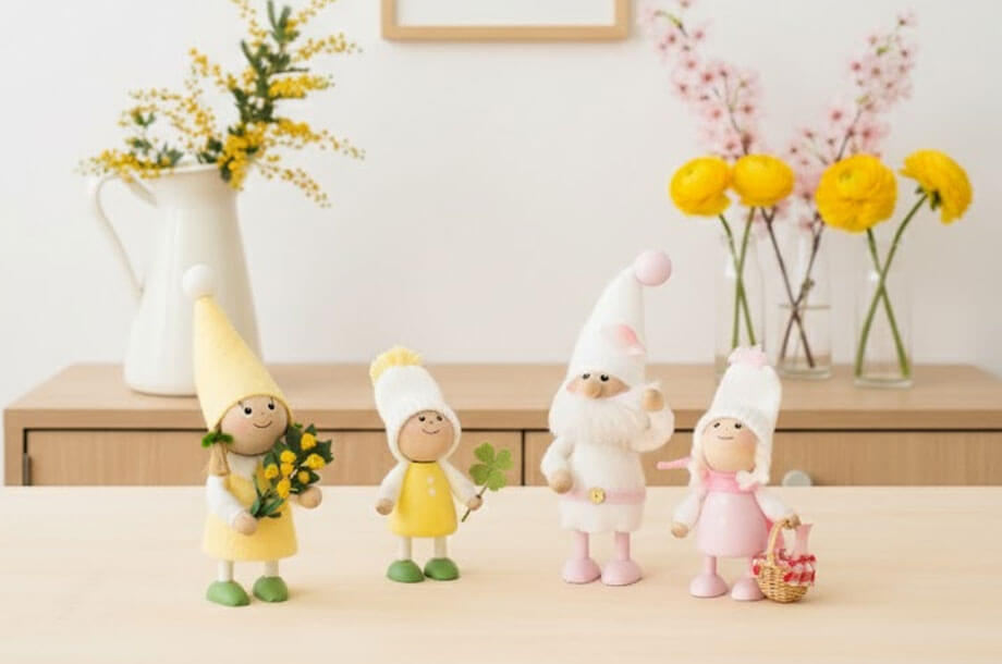 デンマークの妖精「ニッセ」と、日本の春を彩る桜やミモザ。自然を愛し、季節の移ろいを楽しむ心は、遠く離れた二つの国にも共通しています。