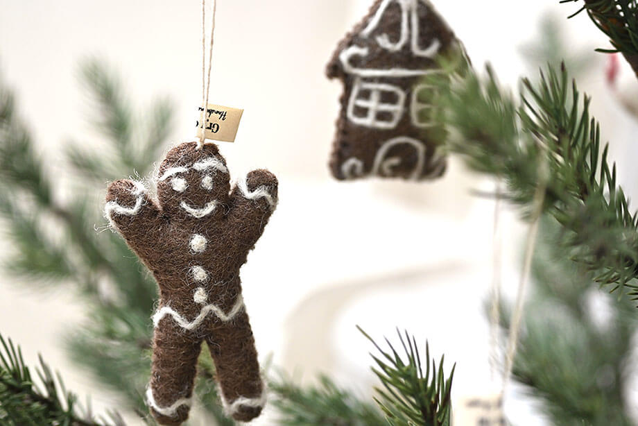 ジンジャーブレッドのオーナメントは全3種。男の子、ハウス、お星様をご用意しております。