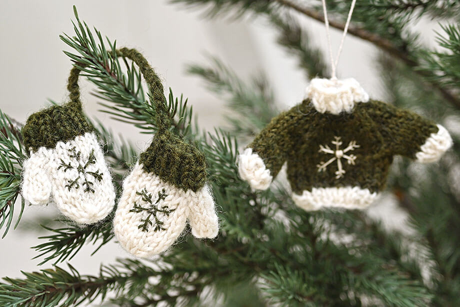 ニッセセーターと手袋が1セットになったミニチュアオーナメント! 赤い長靴のご用意もございます。