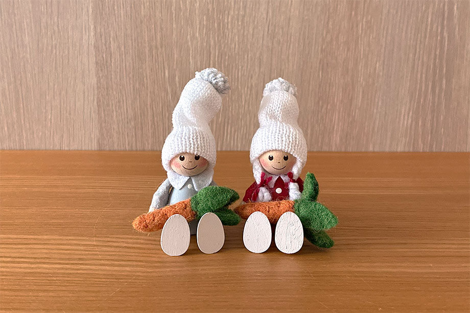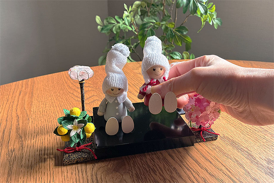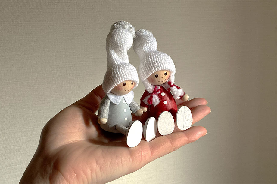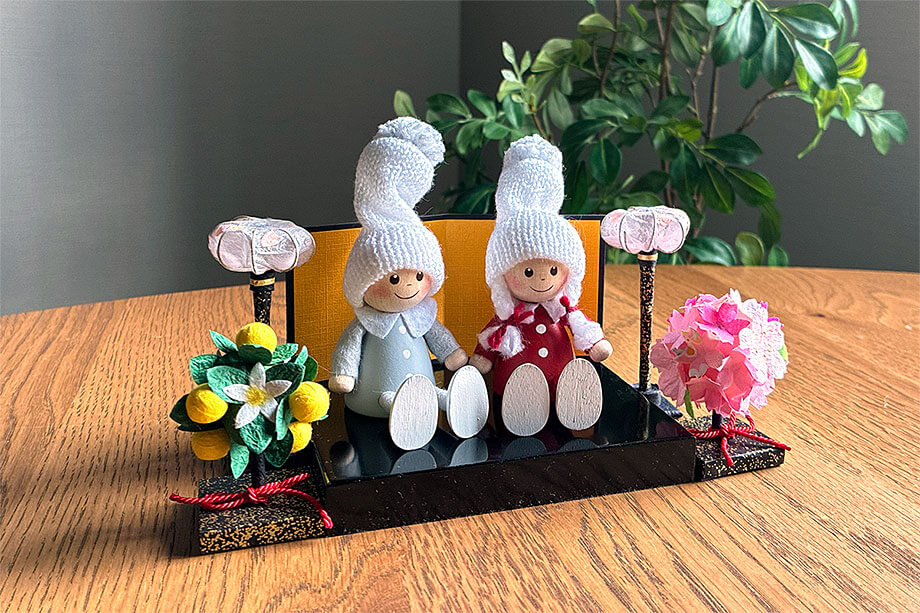 クリスマスシーズンを越えてもずっと飾っていられる2人を、北欧生まれのチャーミングなおひな様とおだいり様に仕上げました。