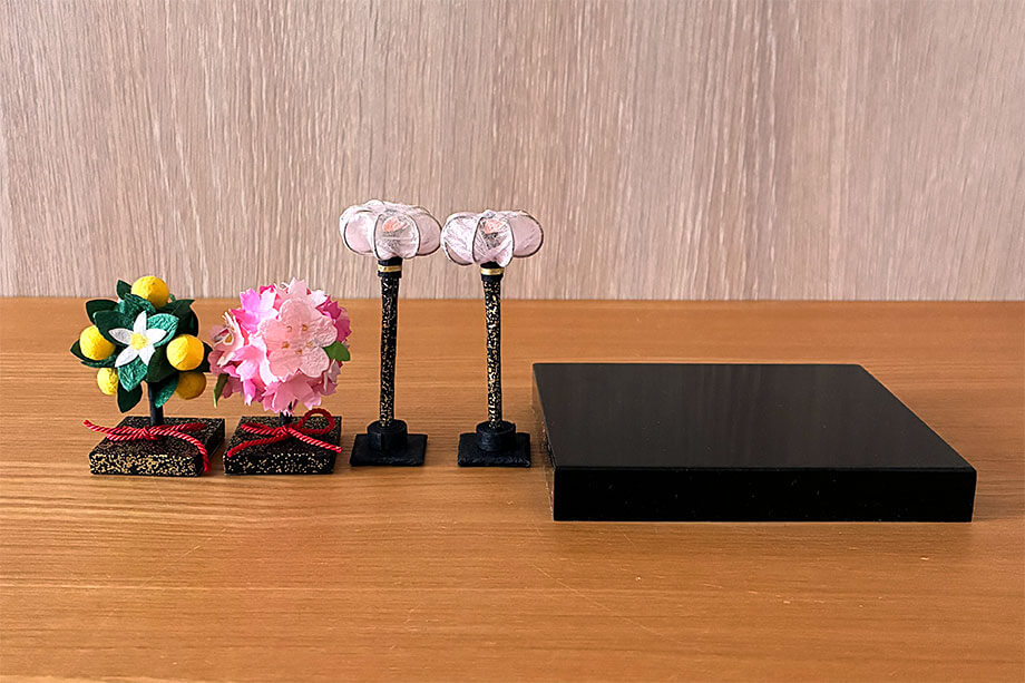 可愛らしい女雛と男雛はもちろん、ひな祭りに欠かせない小道具も全てこだわり抜かれた、極上の縁起物に仕上がっています。