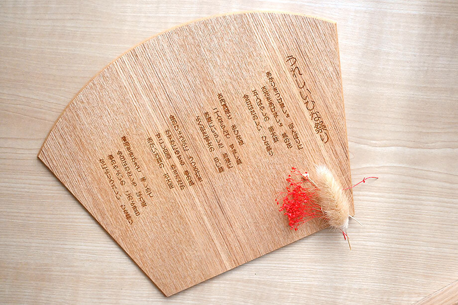 多彩な小道具の中でも、「うれしいひな祭り」の歌詞が刻まれた木製屏風は、ひときわ魅力的です。