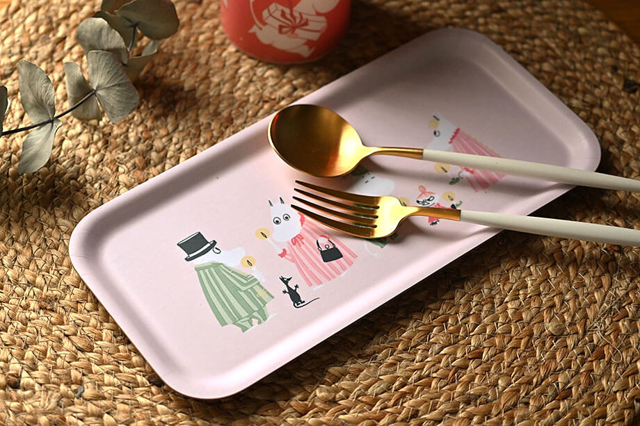 少し小柄なトレイは、1人暮らしにピッタリなサイズです。ムーミンと一緒に、楽しいブレイクタイム!