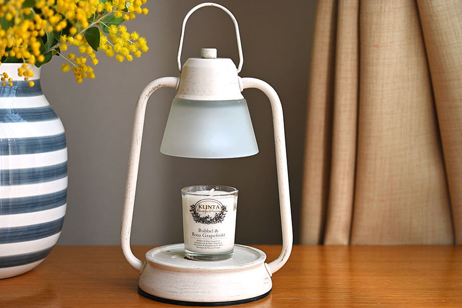 裏路地のアンティーク店にひっそりと置いてあるような、レトロなデザインが魅力的なランプ型のキャンドルウォーマー。