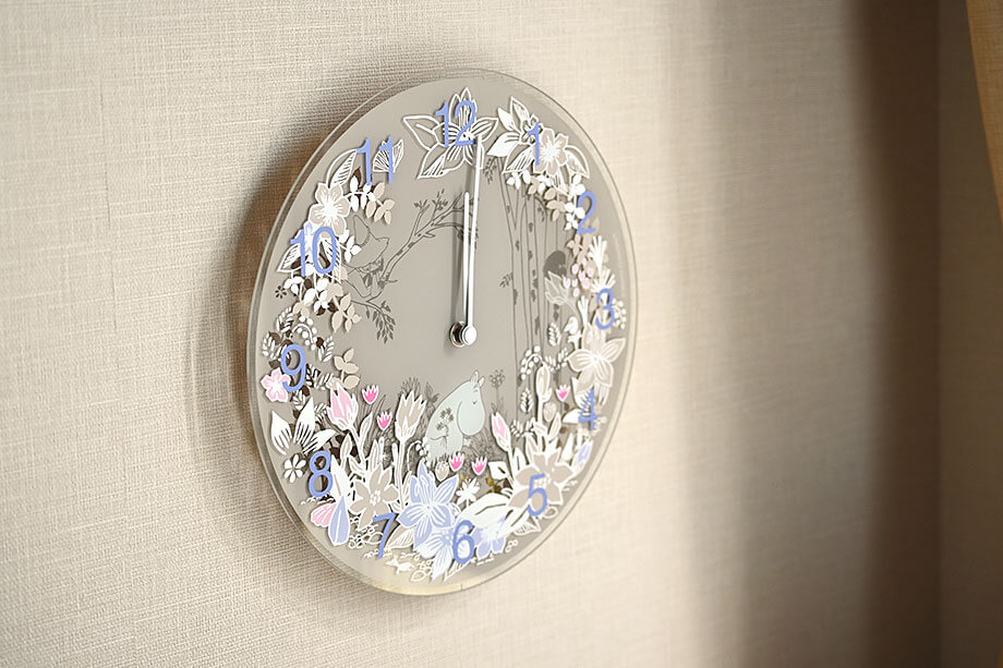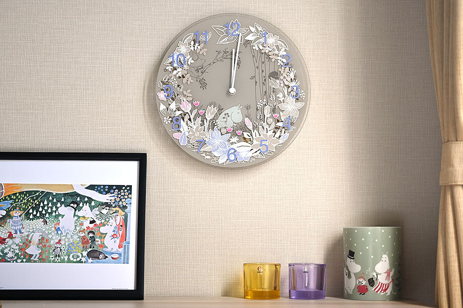 ムーミン谷に飛び込んだような、多重構造の美しい掛け時計。華やかながら、おうちに溶け込むデザイン。