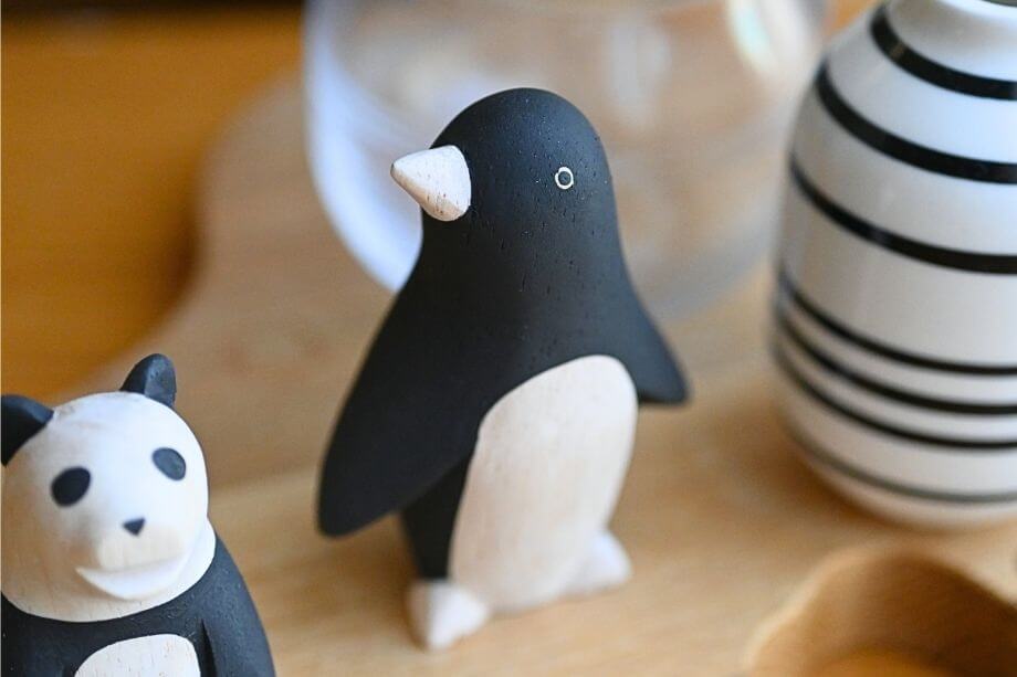 よちよち歩きが目に浮かぶペンギンさんは、とっても珍しい横向きのデザイン! 黒色がクールです。
