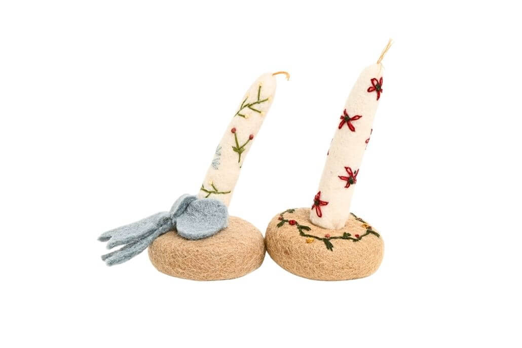 すらりと伸びた姿が上品な、ウール100%のリボン付きキャンドルホルダーです。
